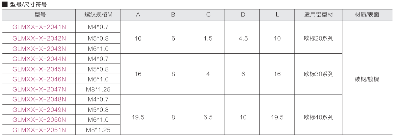 訂購:滑塊螺母(歐標)