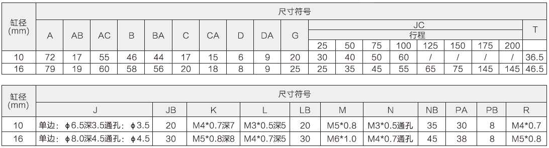 尺寸規(guī)格(缸徑10~16)